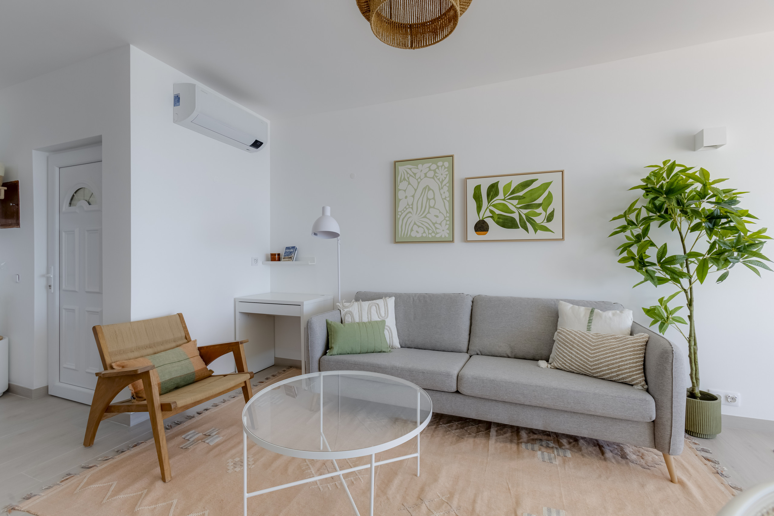 Um apartamento com uma vista destas é difícil de encontrar! Este T2 foi totalmente remodelado usando tons frescos e calmantes para realçar a tranquilidade que o oceano nos traz.