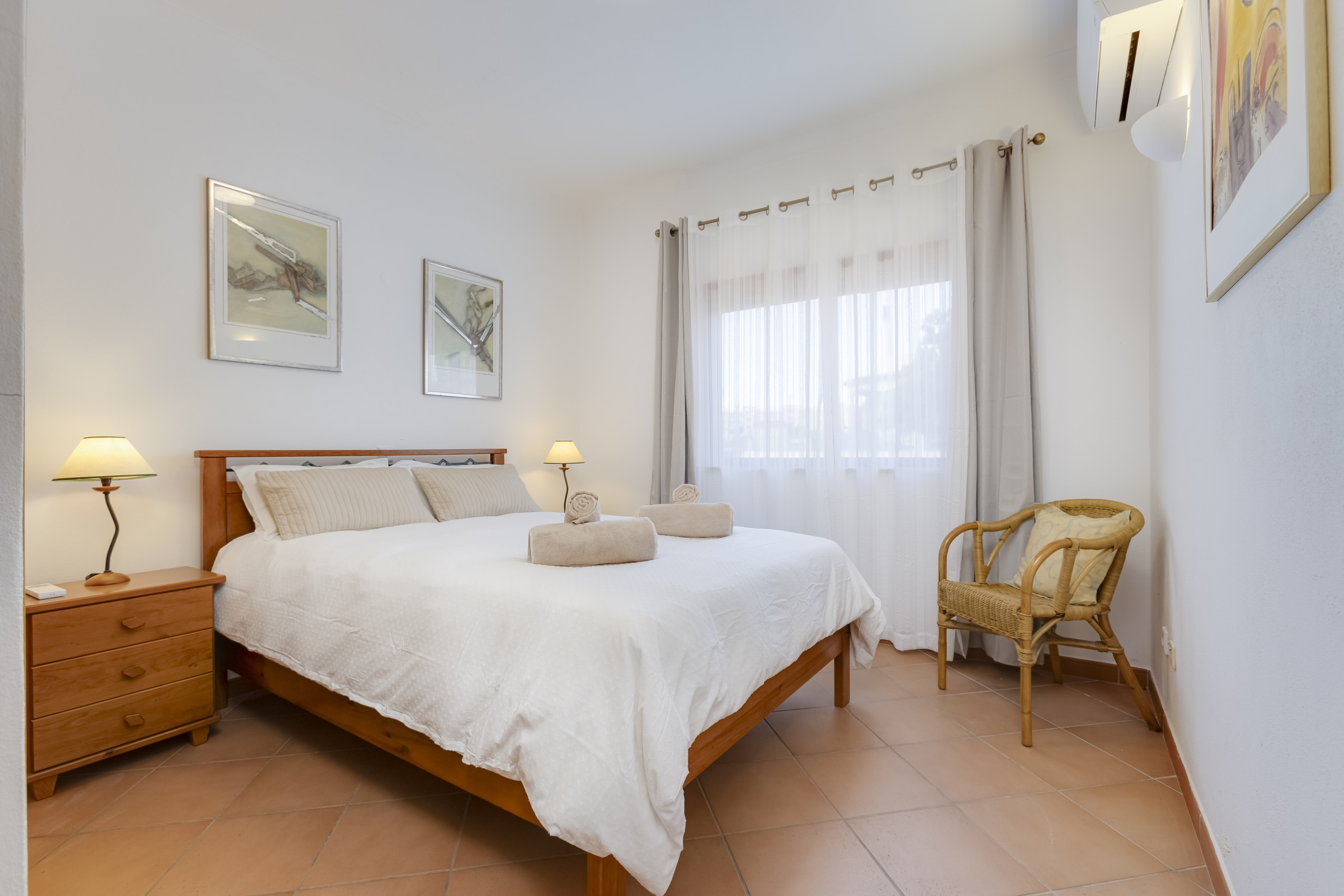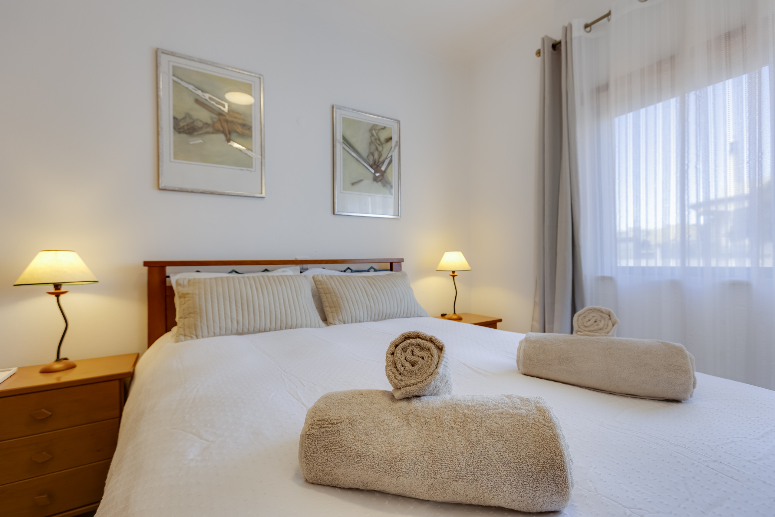 Das Hauptschlafzimmer verfügt über ein eigenes Bad, das zweite Schlafzimmer über ein separates Badezimmer, beide mit Badewanne und Dusche. Das Wohnzimmer ist geräumig und bietet mit seinen beiden Sofas, die sich jeweils in ein Schlafsofa umwandeln lassen, Platz für insgesamt sechs Personen. Das Apartment ist komplett ausgestattet und bietet alle wichtigen Annehmlichkeiten, darunter Klimaanlage in beiden Schlafzimmern und im Wohnzimmer, Waschmaschine, WLAN und vieles mehr.