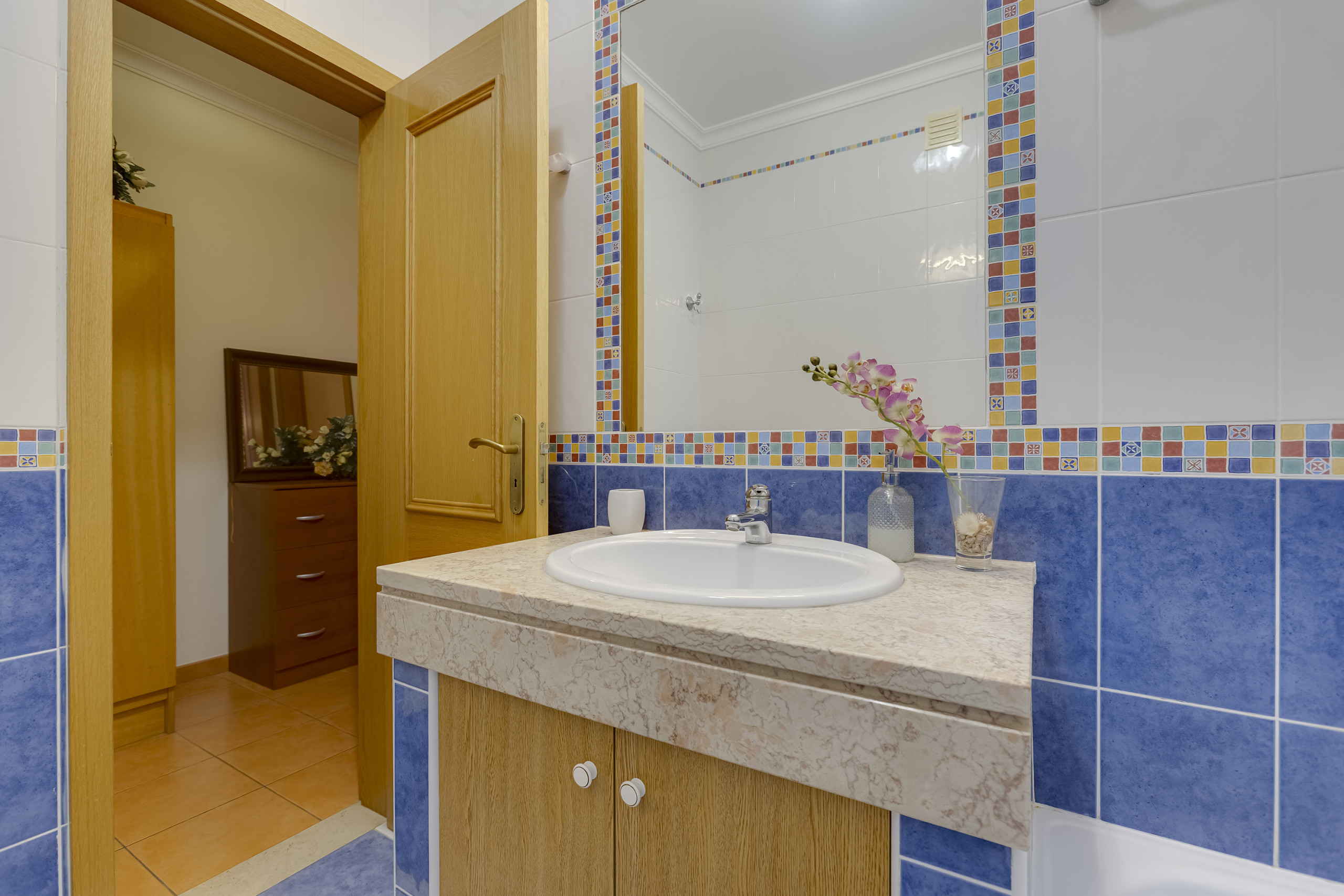 Bestehend aus einem Hauptschlafzimmer mit Doppelbett und eigener Dusche, einem zweiten Schlafzimmer mit zwei Einzelbetten, einem weiteren Badezimmer mit Badewanne, einer voll ausgestatteten Küche und einem gemütlichen Wohnzimmer mit Zugang zu einem sonnigen Balkon mit Meerblick.