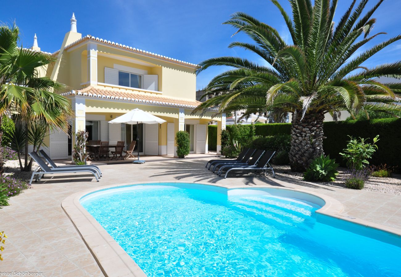 Esta casa tiene tres habitaciones en el piso superior y una en el piso bajo. La habitación principal, que está en el piso superior, es una suite con bañera y tiene acceso a un balcón con vistas al mar. Las otras dos habitaciones de arriba tienen dos camas individuales y comparten un baño con ducha. La habitación abajo tiene una cama doble y está apoyado por un baño con ducha. El salón es amplo con mucha luz, e tiene acceso directo a la maravillosa terraza, con muchas tumbonas, barbacoa y zona de comedor, todo lo que desea para unas vacaciones en familia en el maravilloso Algarve.