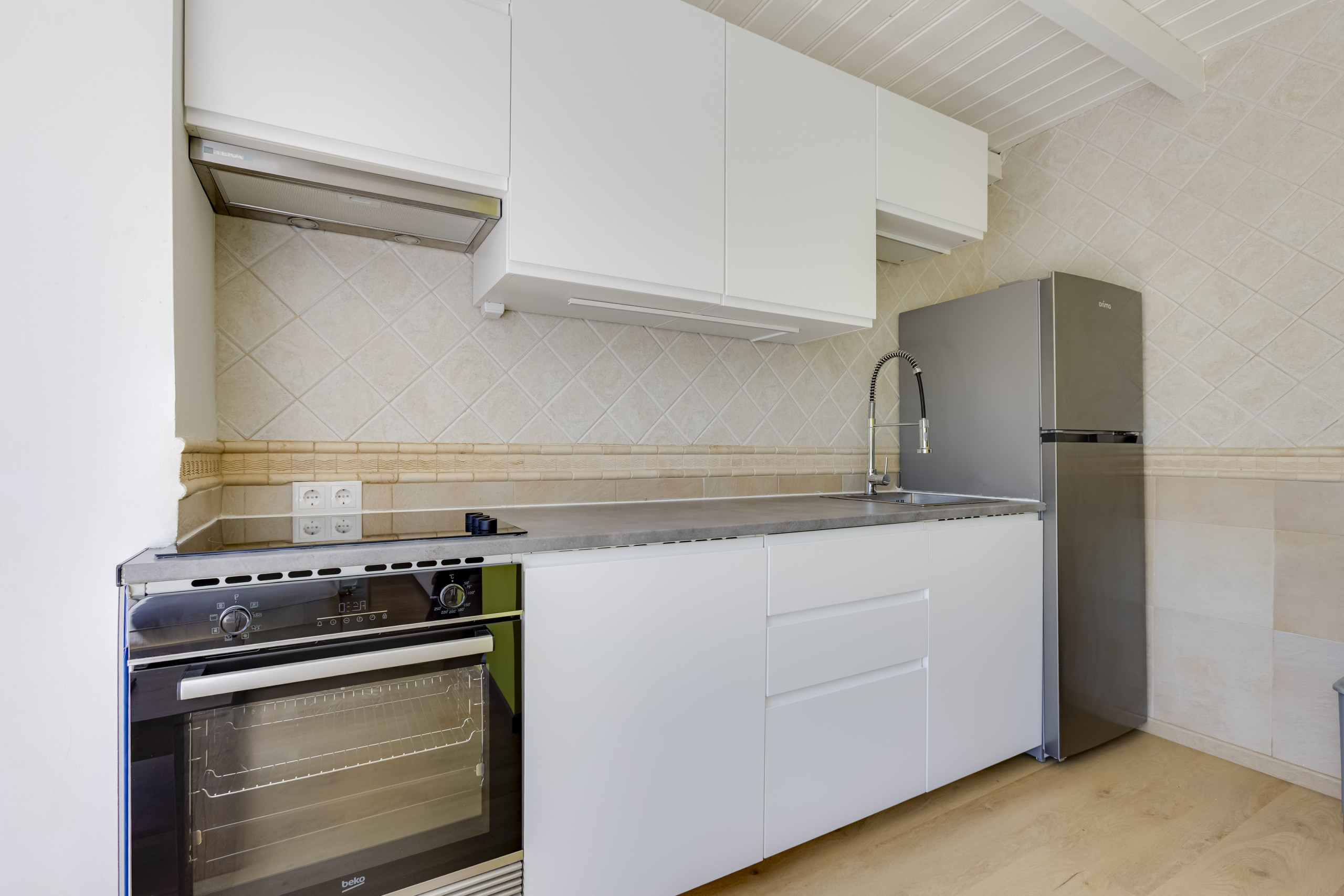 Le coin salon comprend un canapé-lit et une télévision, ainsi qu’une cuisine entièrement équipée. L’espace chambre séparé comprend un lit double confortable et de grands placards. La salle de bain est spacieuse, avec une douche séparée des toilettes. À l’extérieur, un charmant espace offre un endroit paisible pour se détendre et profiter des environs.