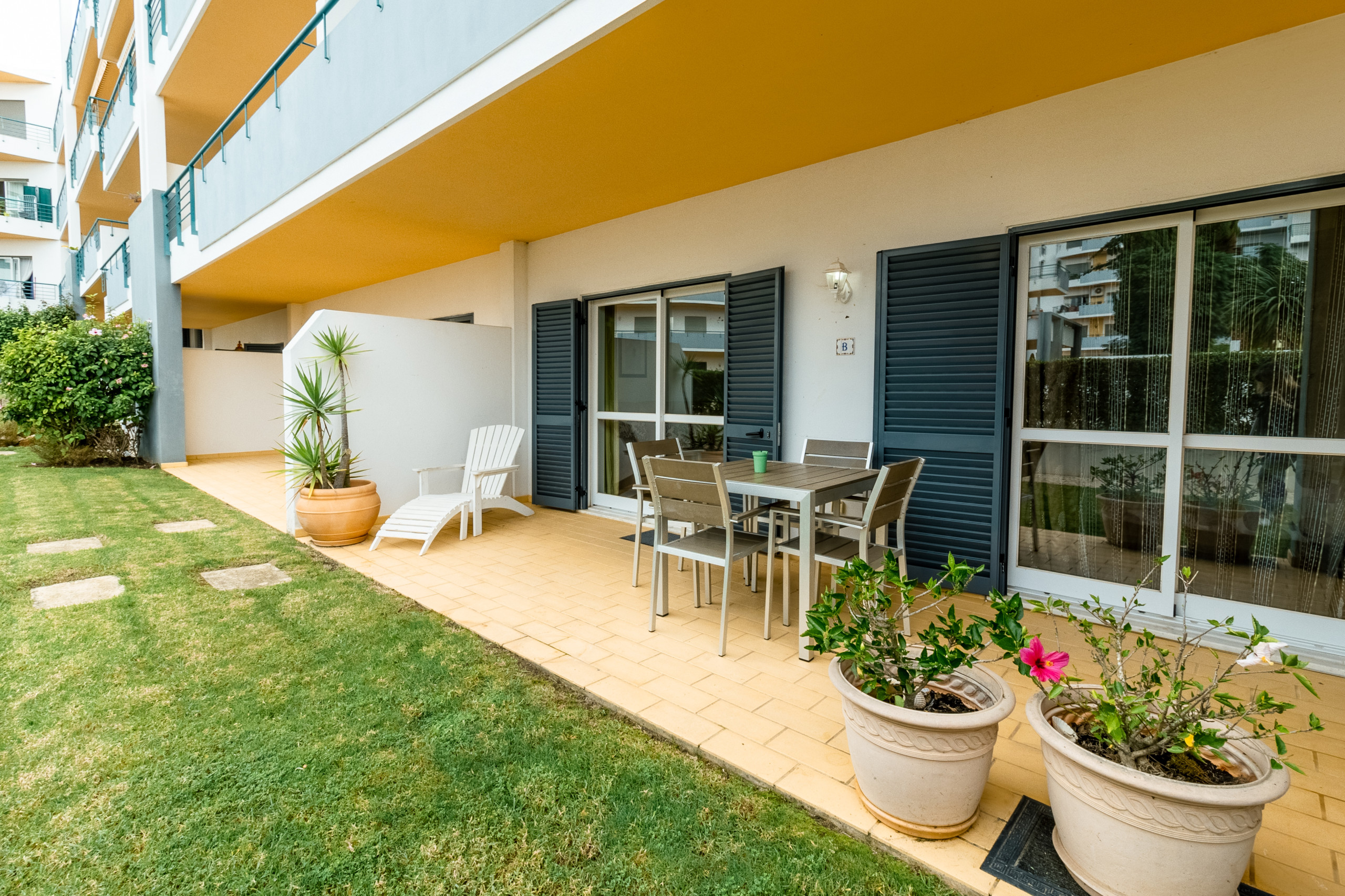 Lumineux appartement d'une chambre avec terrasse et jardin dans un complexe avec piscine.