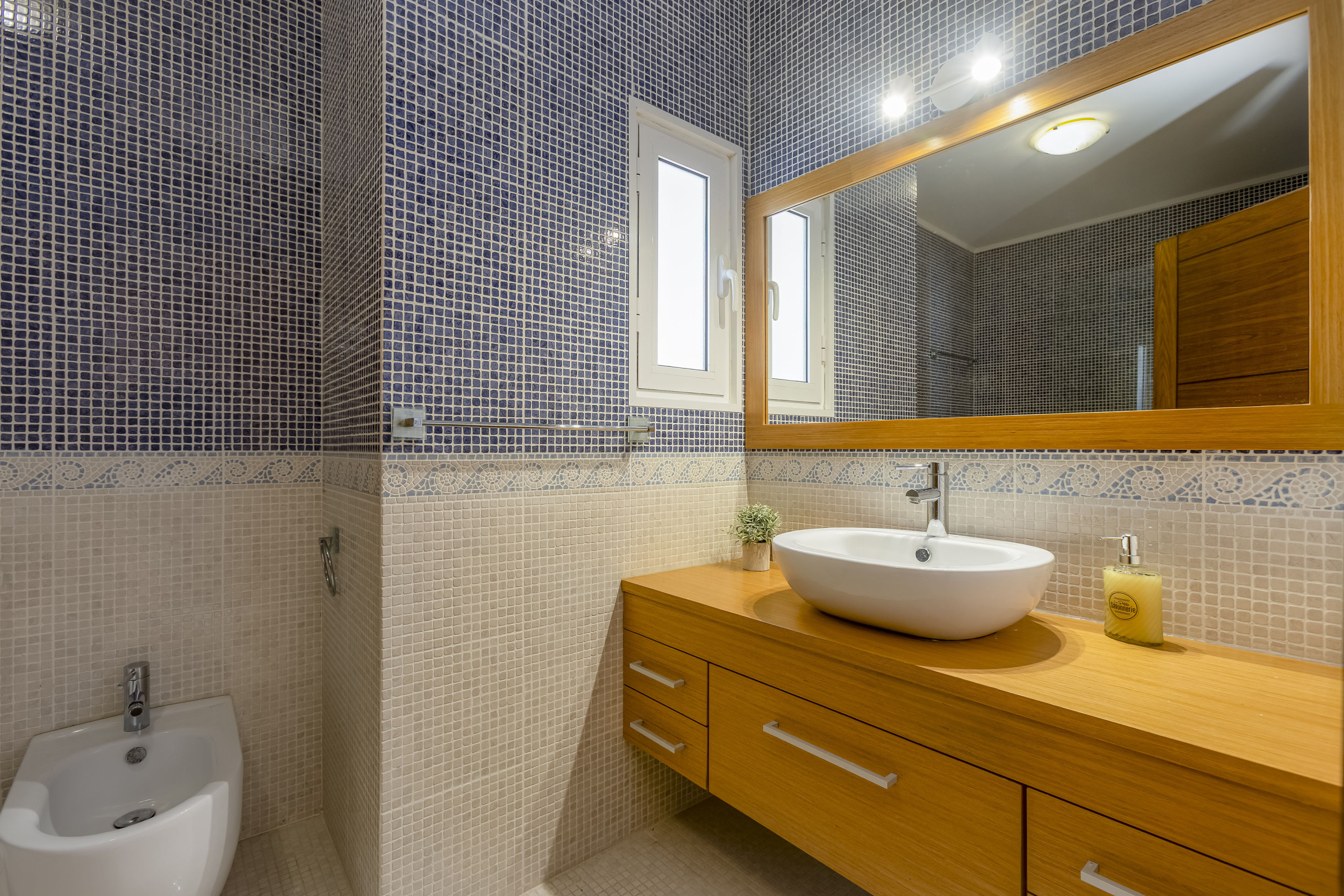 La villa dispone di 4 camere da letto e 4 bagni, inclusi una camera da letto e un bagno al piano terra e tre al piano superiore, ciascuno con bagno privato. Tutte le camere da letto sono luminose, confortevoli e hanno accesso diretto a un cortile o terrazza. Per maggiore comfort durante tutto l'anno, tutte le stanze sono dotate di aria condizionata con funzione di riscaldamento e raffreddamento.